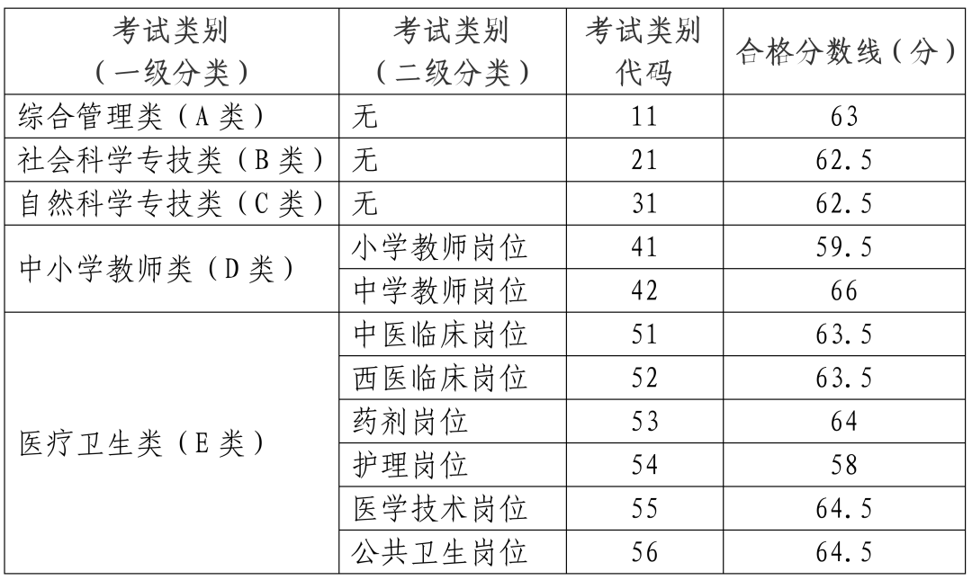 一、《職業(yè)能力傾向測驗(yàn)》單科成績不低于下表中合格分?jǐn)?shù)線。