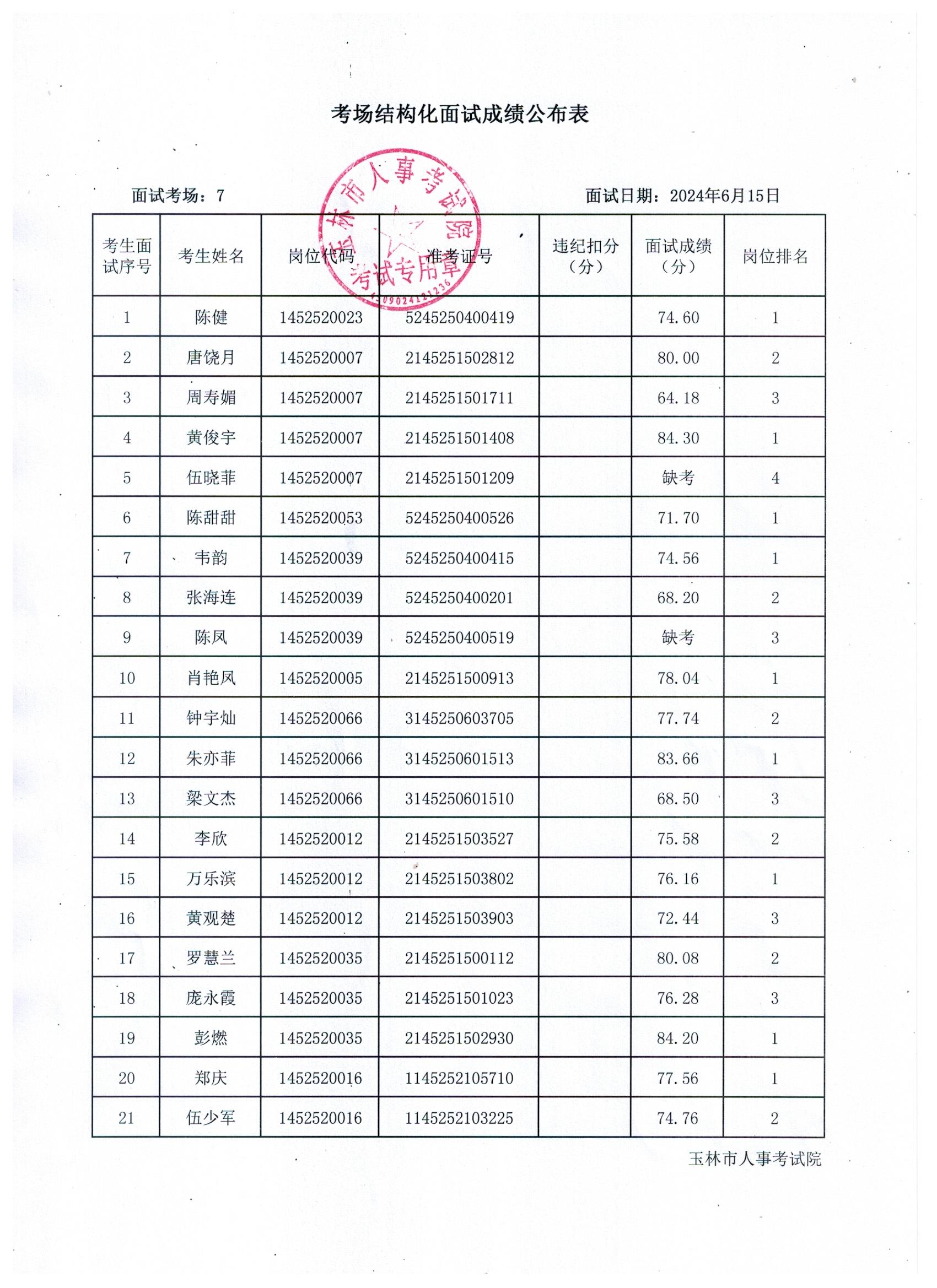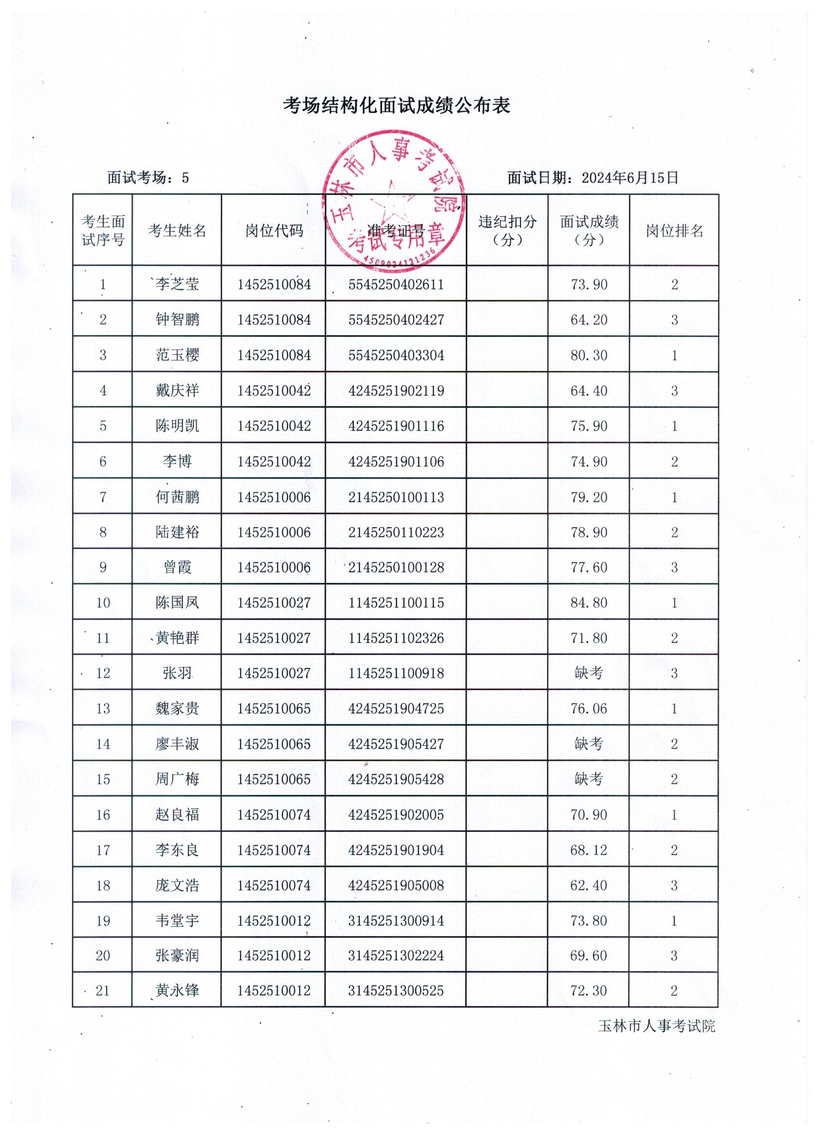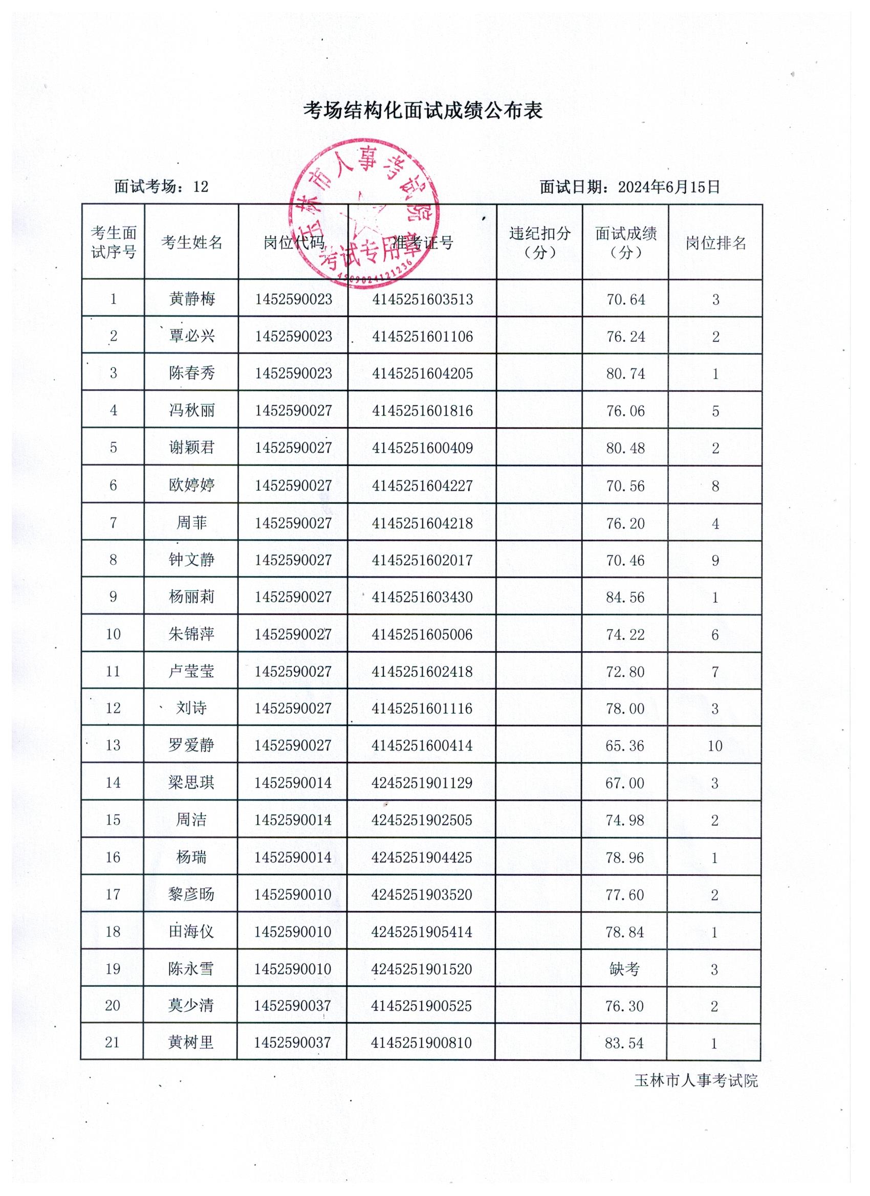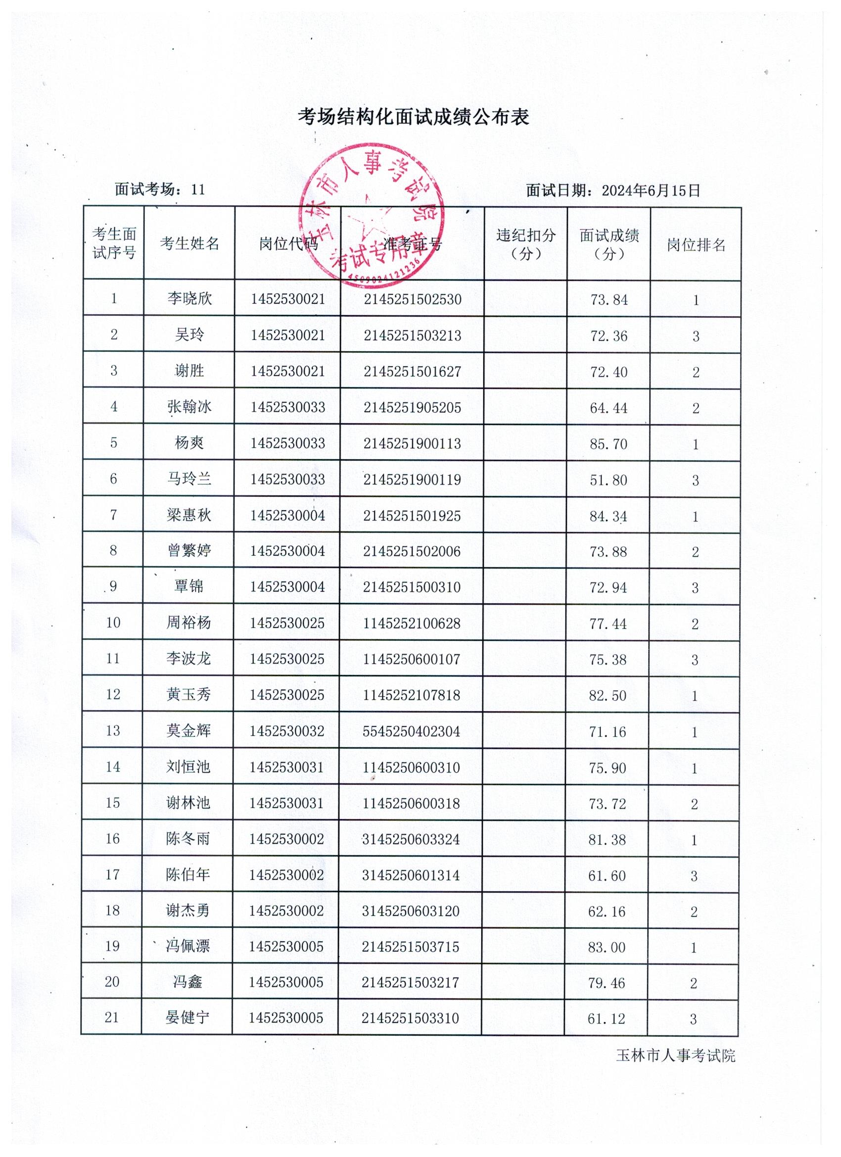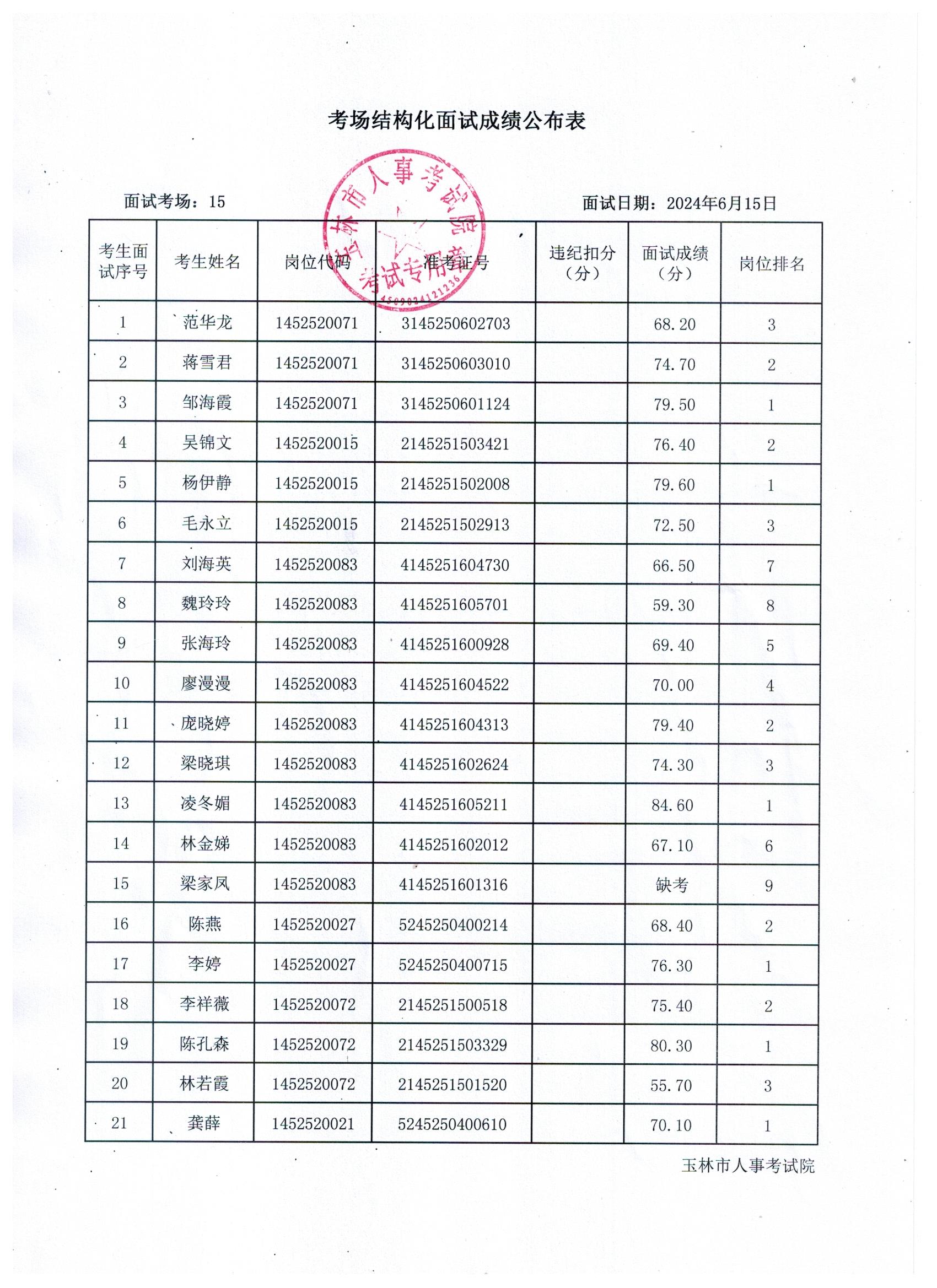 原文標(biāo)題:2024年玉林市直(含玉州區(qū)、福綿區(qū)、玉東新區(qū))事業(yè)單位公開(kāi)招聘人員面試成績(jī)公布(6月15日)