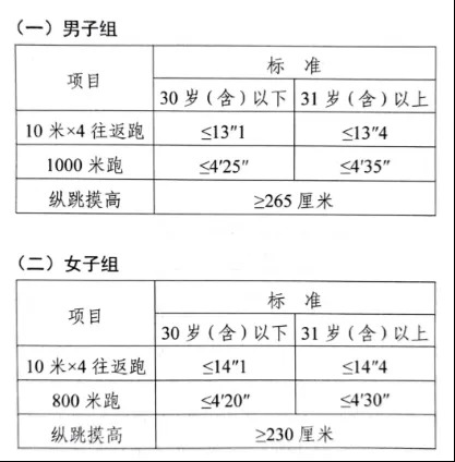 參照《公安機(jī)關(guān)錄用人民警察體能測評(píng)項(xiàng)目和標(biāo)準(zhǔn)》的項(xiàng)目及測試規(guī)則開展體能測評(píng),本次體能測評(píng)的項(xiàng)目和標(biāo)準(zhǔn)如下: