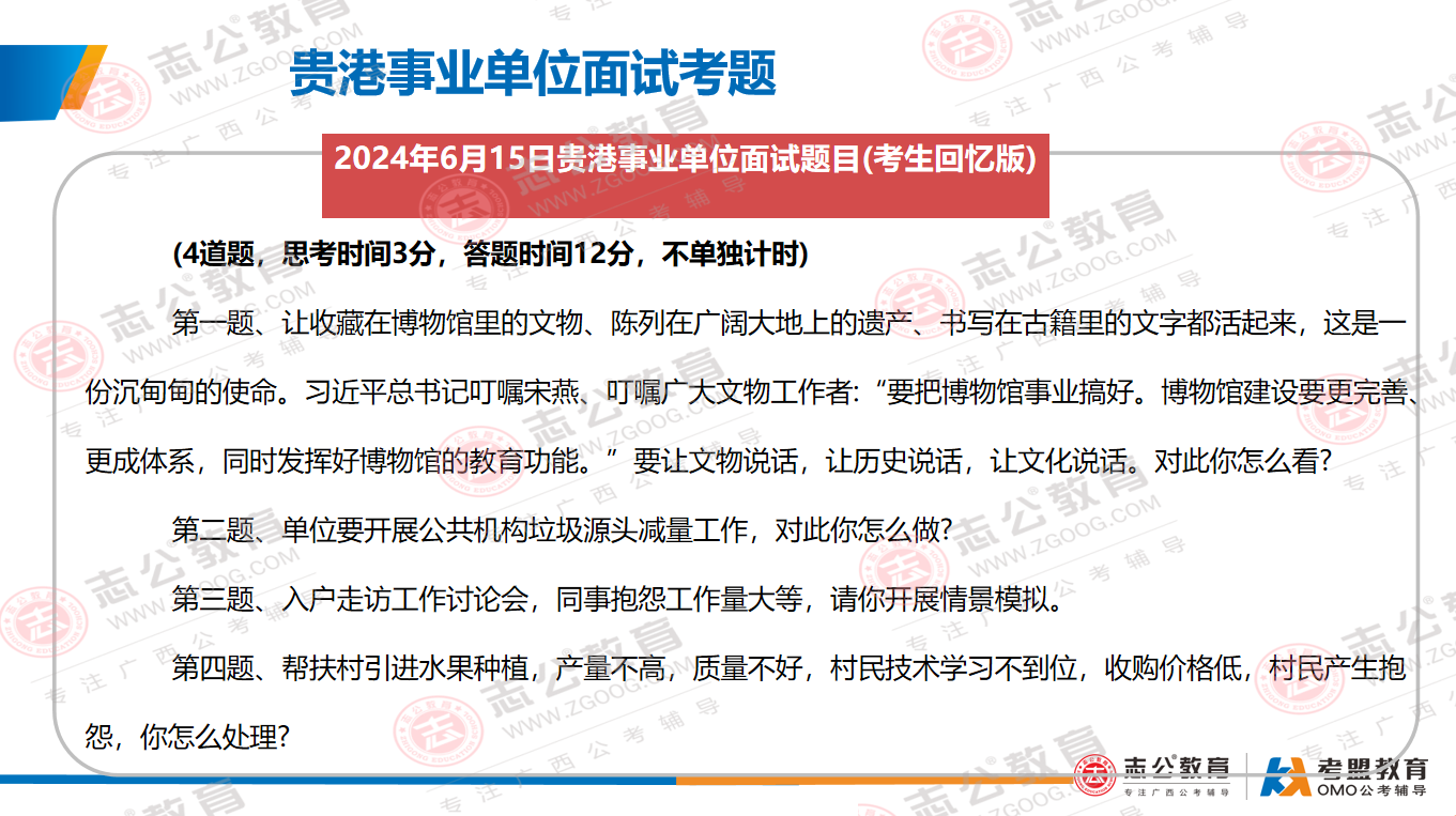 關(guān)于2025年廣西事業(yè)單位面試,小志將依據(jù)不同地市、題型等維度,為大家深入剖析廣西各地市的考情考務(wù),助力各位考生洞察關(guān)鍵要點,系統(tǒng)增強(qiáng)應(yīng)試技能,迎接面試挑戰(zhàn),助力你在面試中脫穎而出!