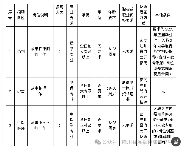 報名地點:陸川縣溫泉鎮(zhèn)陸城衛(wèi)生院五樓辦公室。