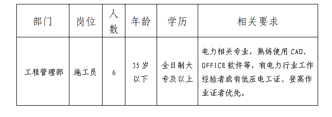 根據(jù)公司業(yè)務(wù)發(fā)展需要,面向社會(huì)公開招聘專業(yè)技術(shù)人員6名,現(xiàn)將招聘相關(guān)事項(xiàng)公告如下: