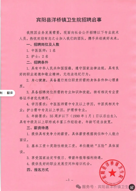 原文標題:賓陽縣洋橋鎮(zhèn)衛(wèi)生院招聘啟事