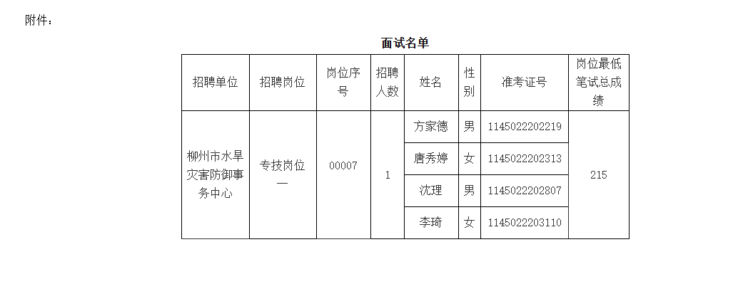 根據(jù)《柳州市2025年度上半年事業(yè)單位公開考試招聘工作人員公告》《廣西壯族自治區(qū)事業(yè)單位公開招聘人員實施辦法》(桂人社發(fā)〔2011〕155號)、《關(guān)于印發(fā)<廣西壯族自治區(qū)事業(yè)單位公開招聘工作人員面試工作規(guī)則(試行)>的通知》(桂人社發(fā)〔2012〕79號)的規(guī)定,柳州市水利局擬組織所屬事業(yè)單位公開招聘工作人員面試,現(xiàn)將相關(guān)事宜公告如下: