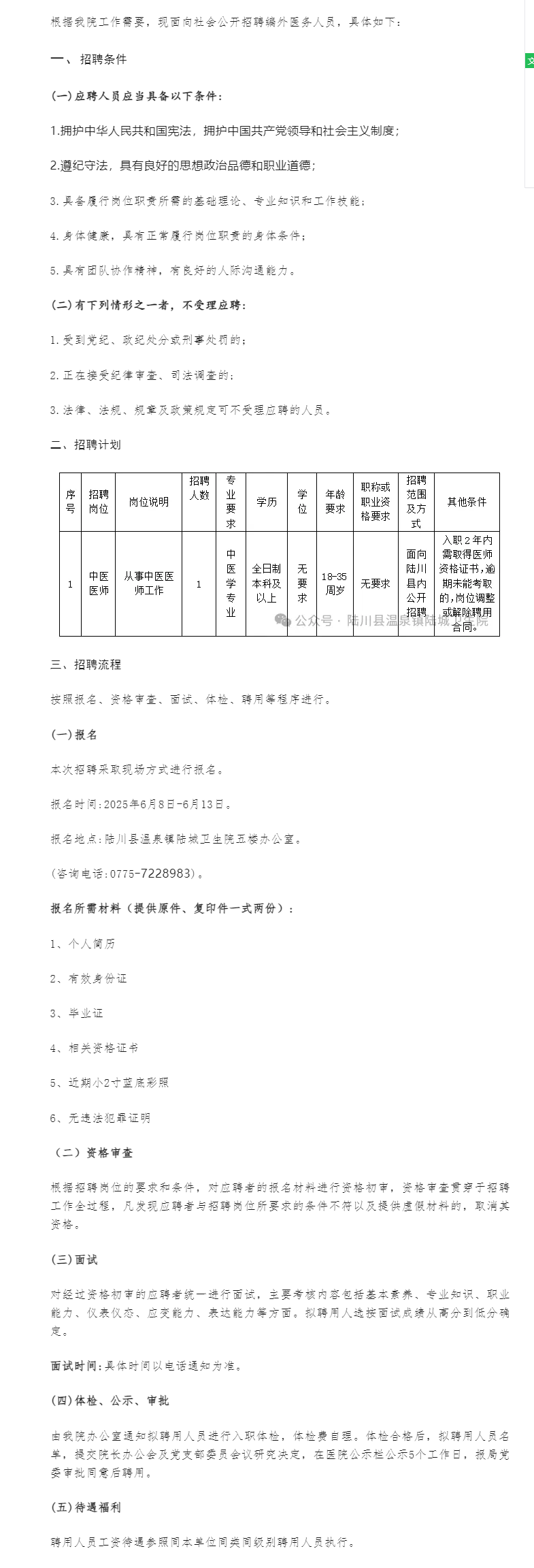原文標題:陸川縣溫泉鎮(zhèn)陸城衛(wèi)生院公開招聘編外醫(yī)務(wù)人員公告