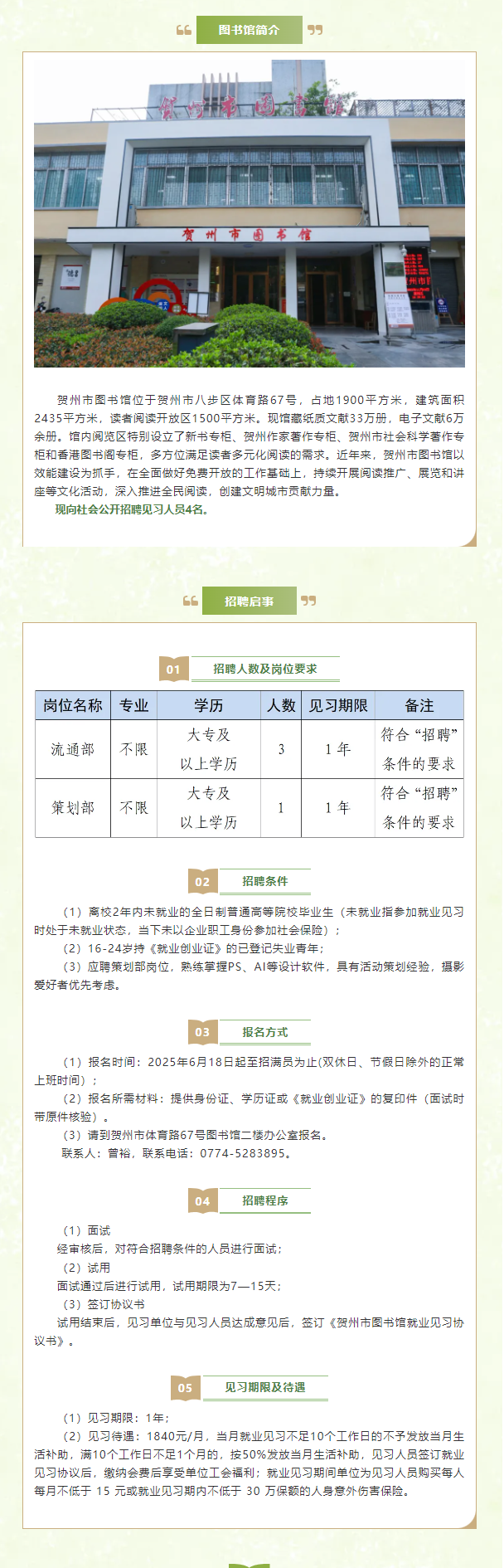 2025年賀州市圖書(shū)館招聘見(jiàn)習(xí)人員4人