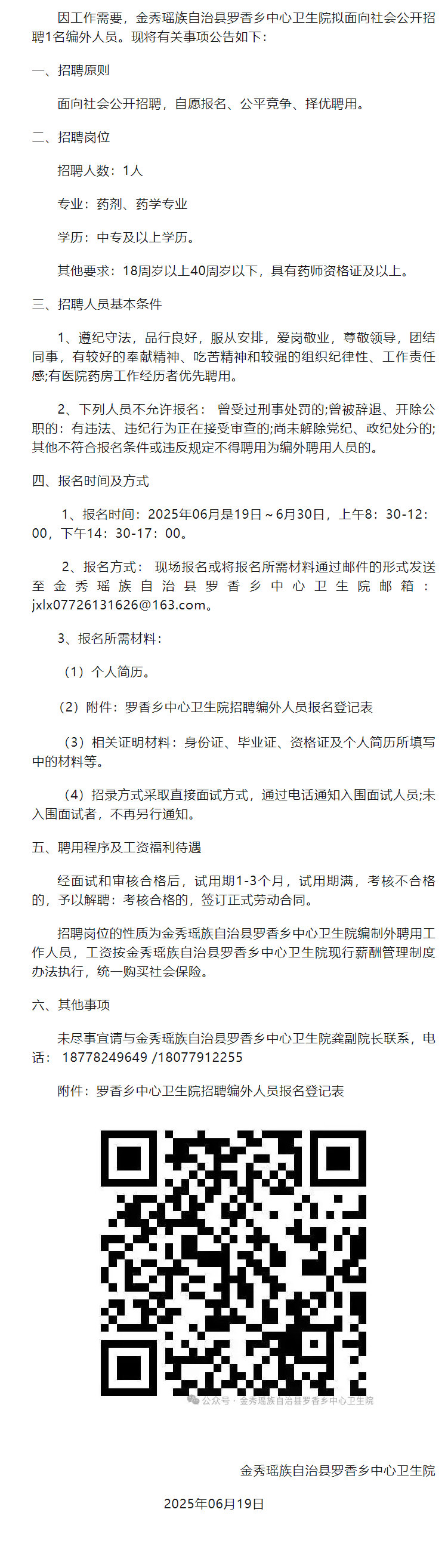 2025年金秀瑤族自治縣羅香鄉(xiāng)中心衛(wèi)生院招聘工作人員1人