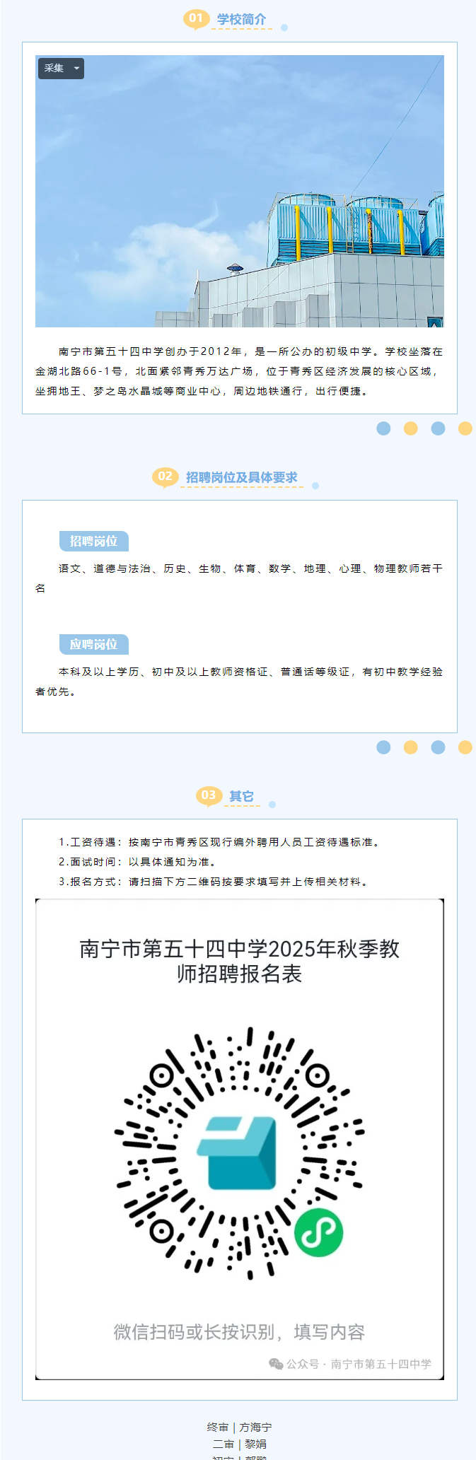 原文標(biāo)題:南寧市第五十四中學(xué)2025年秋季學(xué)期招聘