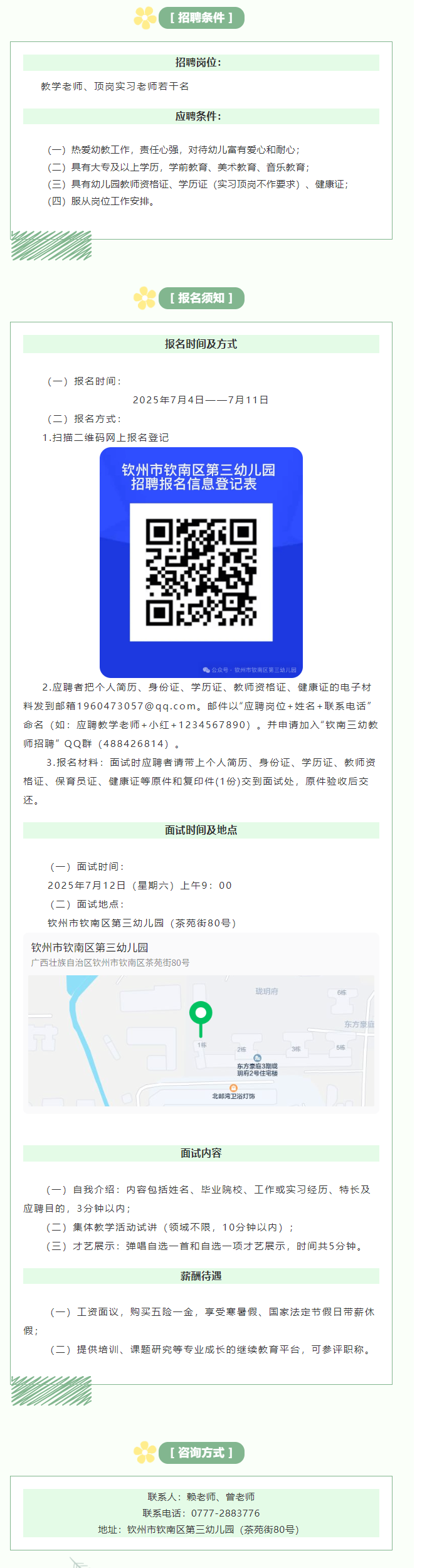 2025年欽州市欽南區(qū)第三幼兒園秋招聘教學(xué)老師、頂崗實(shí)習(xí)老師公告