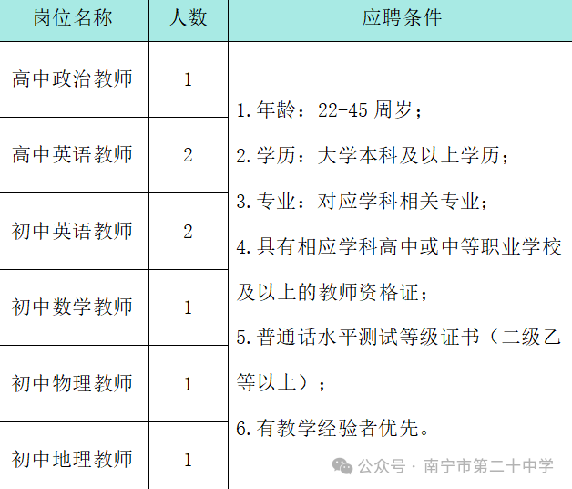 原文標題:南寧市第二十中學教師招聘啟事