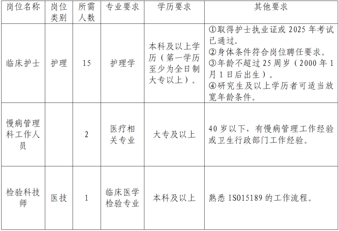 (一)報名。應(yīng)聘者需在2025年9月21日前將個人電子簡歷及應(yīng)聘所需佐證材料,包括但不限于畢業(yè)證(第一學(xué)歷和最高學(xué)歷)、學(xué)位證、執(zhí)業(yè)證(考試成績)、職稱證、進(jìn)修結(jié)業(yè)證、專科護(hù)士培訓(xùn)合格證、執(zhí)業(yè)資格考試成績單等打包發(fā)送至rsk7836669@163.com郵箱,報名材料以“姓名+專業(yè)+衛(wèi)技招聘”名字命名。